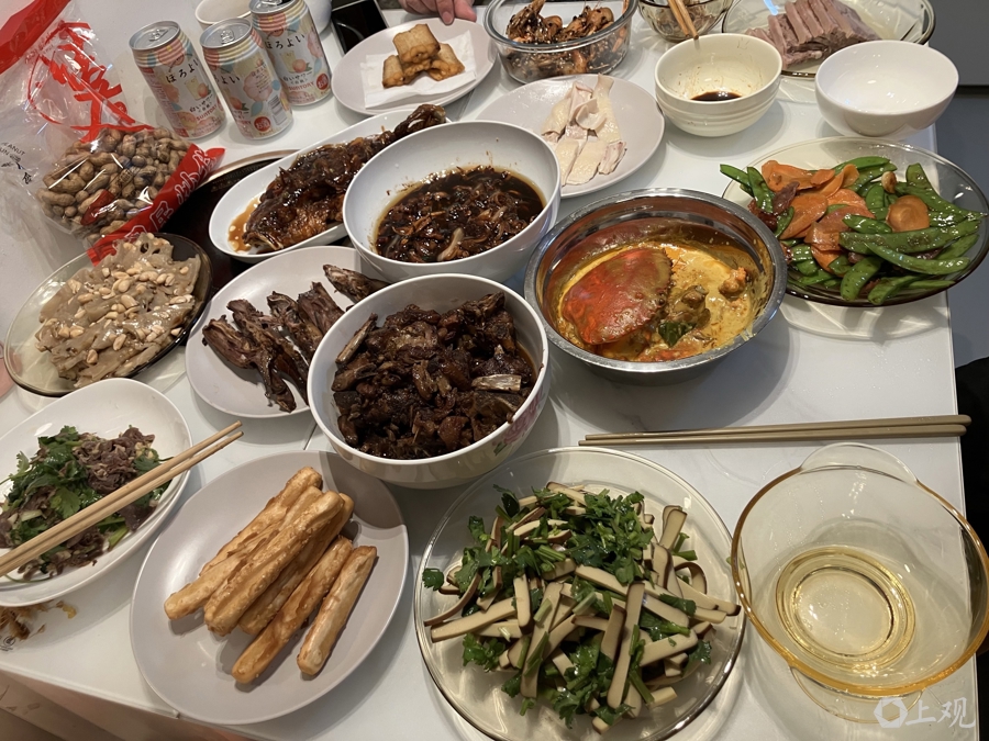 “大年月朔到初七我齐在加班,除夕放了一天假,挑升准备除夕饭。”邵焕给记者看了他的配头挑升拍摄的除夕饭制品,鸡、鸭、鱼、肉、虾、蟹等各式硬菜一应俱全。“一半来自饭馆打包的半制品,一半是除夕夜现炒的,加起来有10多个菜了。”邵焕说,绍兴桑梓吃除夕饭的民俗跟上海东说念主很像,硬菜要吃一个炒一个,齐要吃热乎现炒的,最有聚合的滋味。