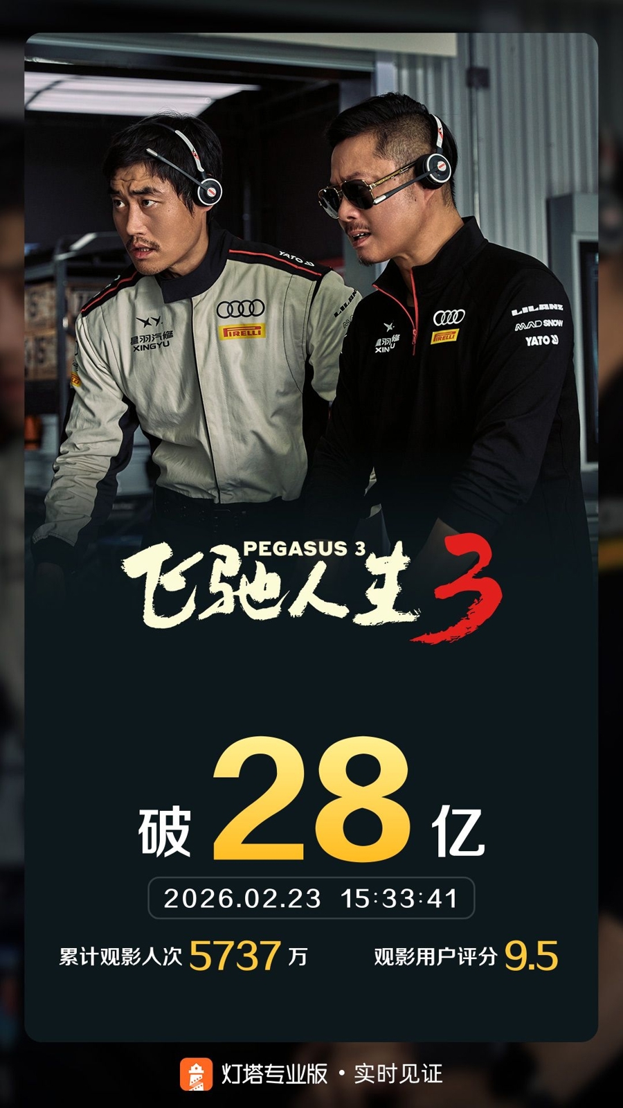 2026春节档(2月15日-2月23日)迎来收官,上海出品电影《疾驰东谈主生3》沿途领跑,上海也稳居宇宙城市票房首位。据大麦文娱旗下灯塔专科版数据,完结2月23日18时,2026年春节档总票房冲突56.08亿元,总场次435.08万场,总东谈主次1.17亿,平均票价47.9元,总场次大幅刷新中国影史春节档总场次记录,平均票价较客岁春节档的50.8元大幅下调接近3元。《疾驰东谈主生3》《惊蛰无声》《镖东谈主:风起大漠》分列档期票房前三位。同期,在春节档的带动下,2026年全年票房已越过80亿元。