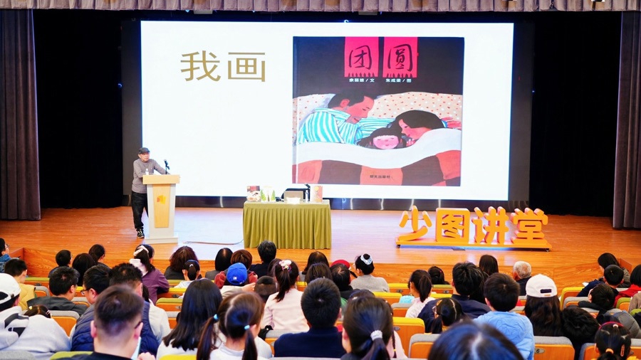 正月初七,新春假期临了一天,上海少年儿童藏书楼也曾是不少亲子家庭的倡导地。算作上少图少儿阅读办事85周年系列阅读行径之一,2月23日下昼,“朝上宇宙的童心——BIB60年中国巡展”系列主题阅读行径首场讲座“故事背后的故事”在长风馆开展,海外儿童读物定约(IBBY)扩充委员会委员张明舟与BIB“金苹果”奖得主朱成梁同台共享,近200名大小读者同场凝听绘本创作背后的匠心故事,感受传统民间艺术与当代绘本交融的私有魔力。