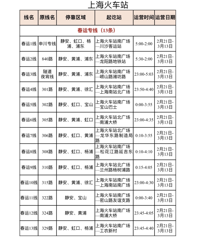 2月23日正好春节假期终末一天,上海迎来春运返程客流岑岭。记者从市交通委获悉,为切实保险凌晨抵沪搭客实时疏运,达成大地公交与机场、火车站、船埠、轨谈交通的高效衔尾,本市公交行业自2月21日起,洞开了30条春运专线、9条春运临时专线和4条定制公交澄清,为返程搭客出行添砖加瓦,最晚运营至3月13日。