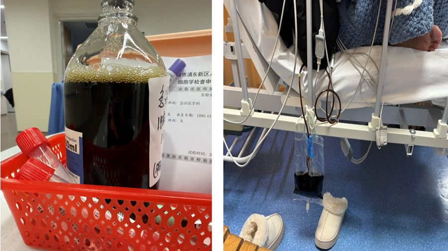 此外,胸部CT和床旁超声均教唆双侧胸腔积液,腹部CT则教唆胰腺周围可疑少许渗出。易女士立时被收入院,独立即行胸腔穿刺,引流出褐咖色胸腔积液,这个突出心情的胸水引起了病区主任宋卫东和主任医师秦龙的警惕,立行将胸水送检。居然,淀粉酶>19200U/L,脂肪酶>4000U/L,该畸形效果萧疏。立即文牍急诊与重症医学科主任李培武,他召集胸外科、消化科、妇科、超声影像科、感染科、外科等多科室群众开展MDT诊断,最终一致磋议有可能为非典型胰腺炎,弥漫浸透至胸腔,也可能胸腔胰腺间存有隐退通说念。