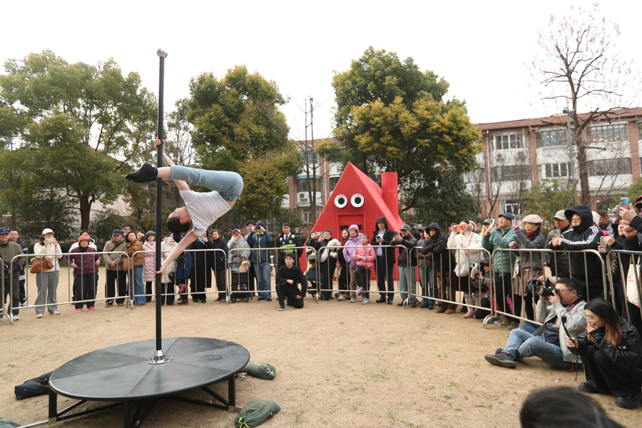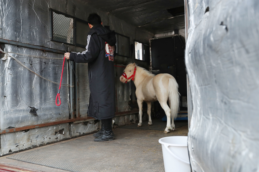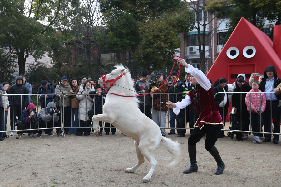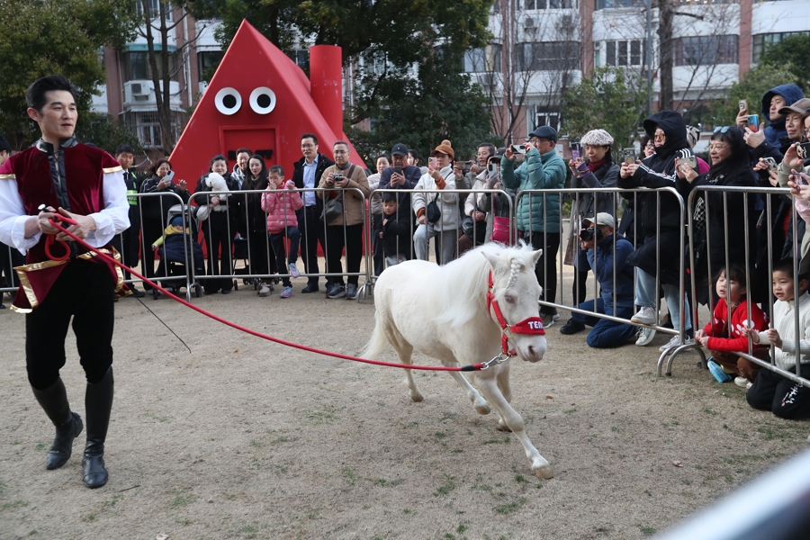 2026年2月23日,市民和旅客在永源路街区与小矮马互动,不雅看精彩马戏扮演。