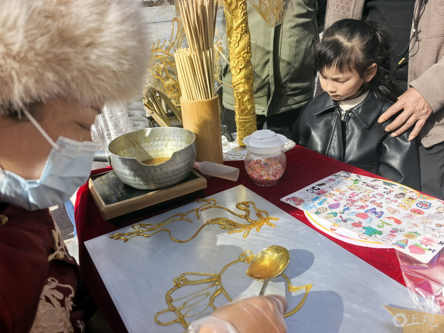 领有千年历史的嘉定西大街,白墙黛瓦、弹硌路周折,新春氛围依旧浓郁。街区内非遗展示区东说念主气郁勃,徐行草编、糖画、压金丝嵌宝、药斑布等非遗技俩蚁集亮相。
