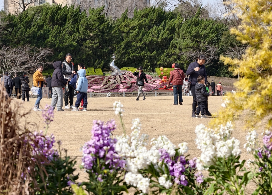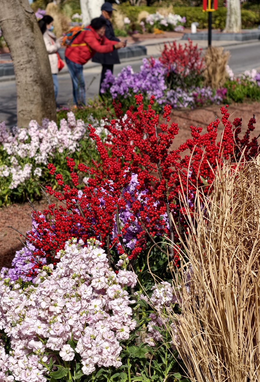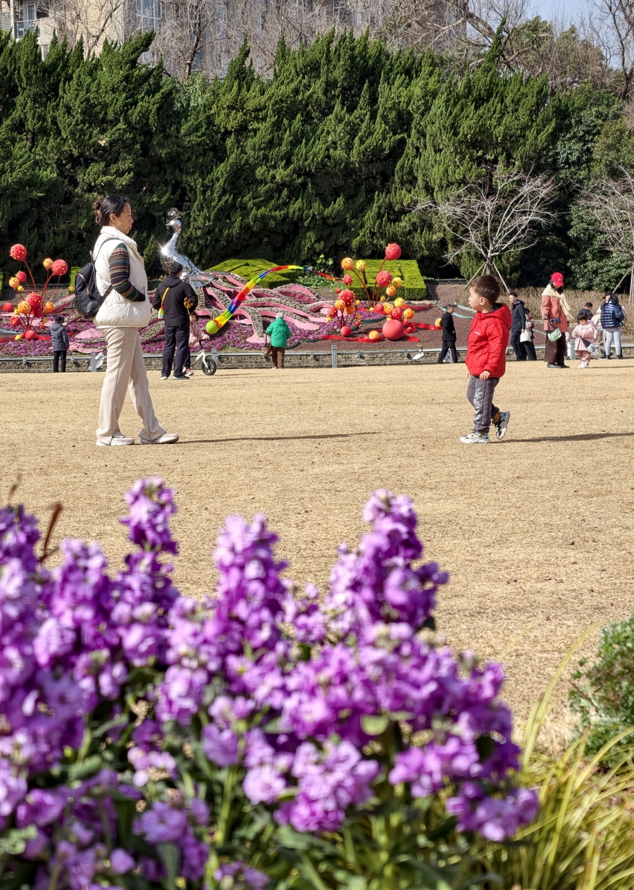 中猴子园里,用心打造的马年迎新花艺装配装点着新年。赏花、剖释和携家出游的东说念主们尽享沐日惬心。